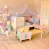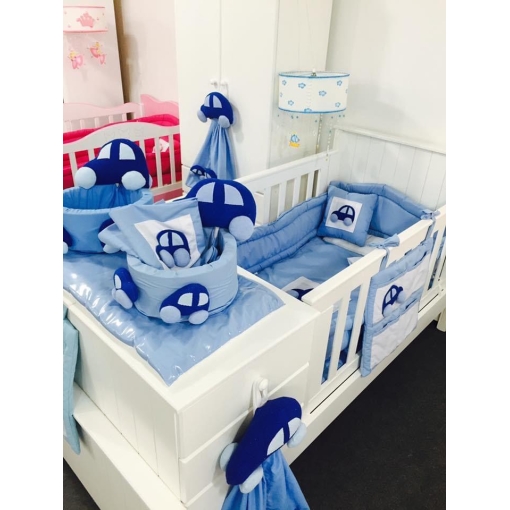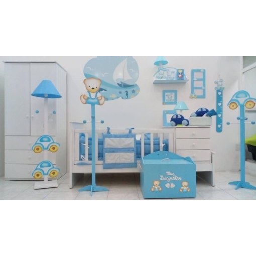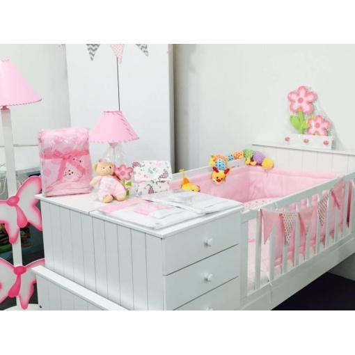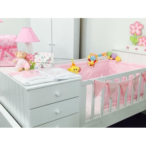 Cuna Funcional AMERICANA de 1 pza + Ropero + Cajonera baulera + Barandas desmontables + colchon Acolchado + Chichonera + Almohadon + Banderines